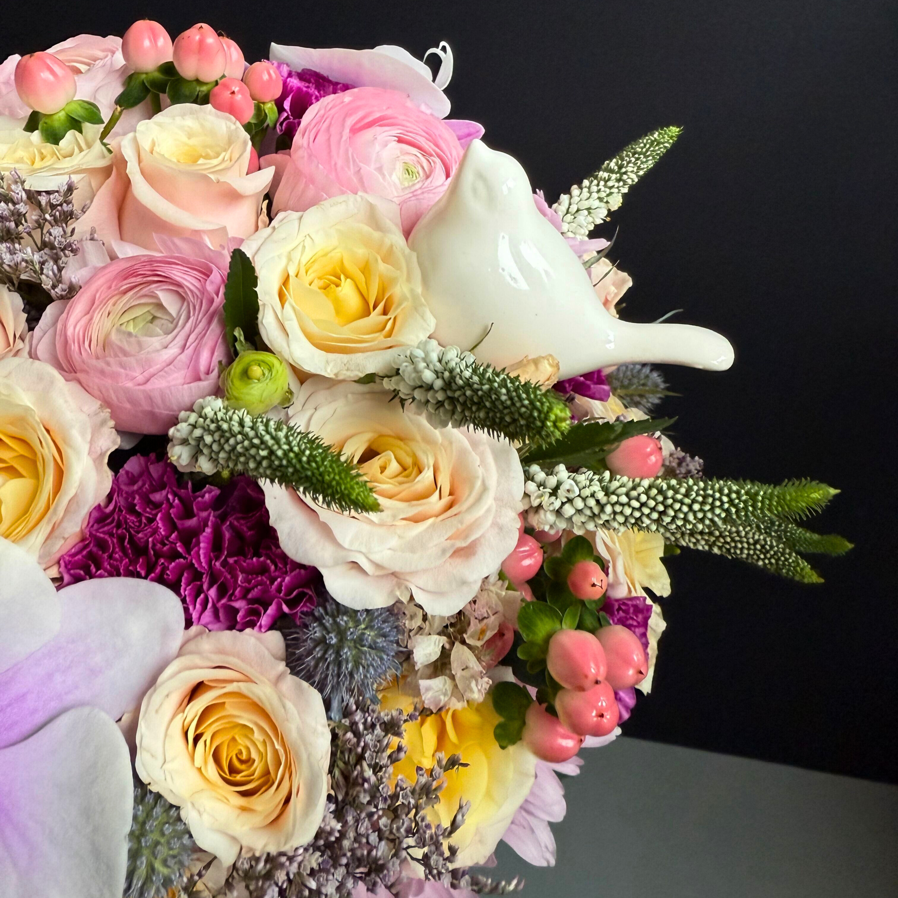 Please notice that the products offered by our company match the photos in terms of size and number of flowers. However, since floral arrangement is an art, variations in the design may occur, which is completely natural. The same florist who arranged the flowers for the photographed sample will also prepare your order. Since some flowers are seasonal and certain colors may not always be available, if you have specific preferences regarding flower type or color, please ensure to coordinate with us before finalizing your order. Otherwise, if the desired flowers or colors are unavailable, they will be substituted with similar flowers or colors that maintain the overall harmony of the arrangement.