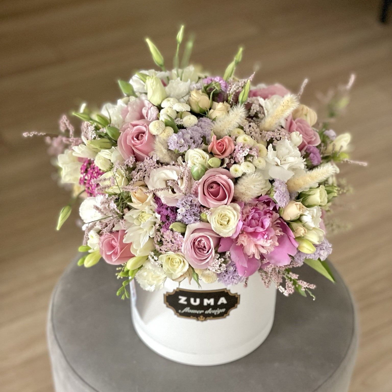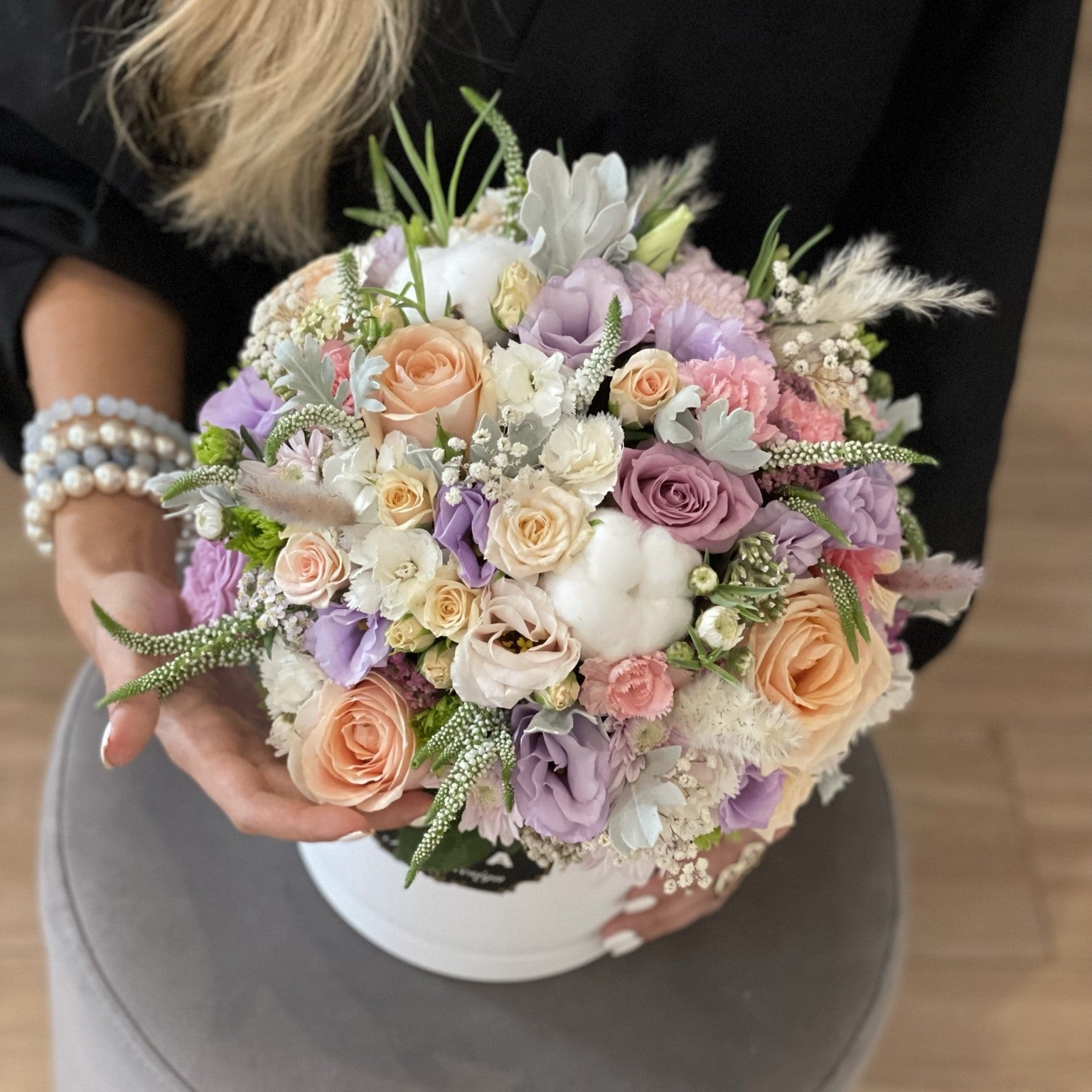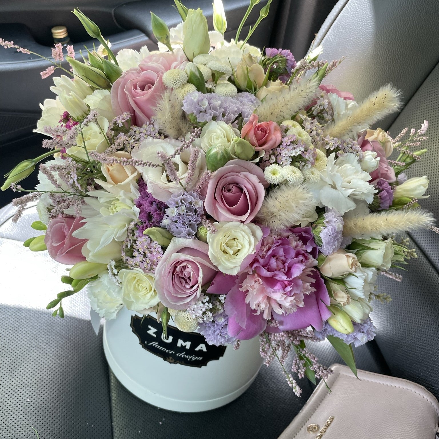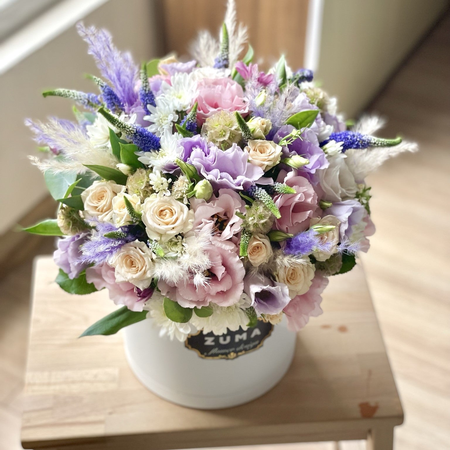 Seasonal Variations: The design may have subtle differences based on seasonal flower availability, yet each arrangement maintains the same dreamy color scheme and luxurious quantity of blooms.