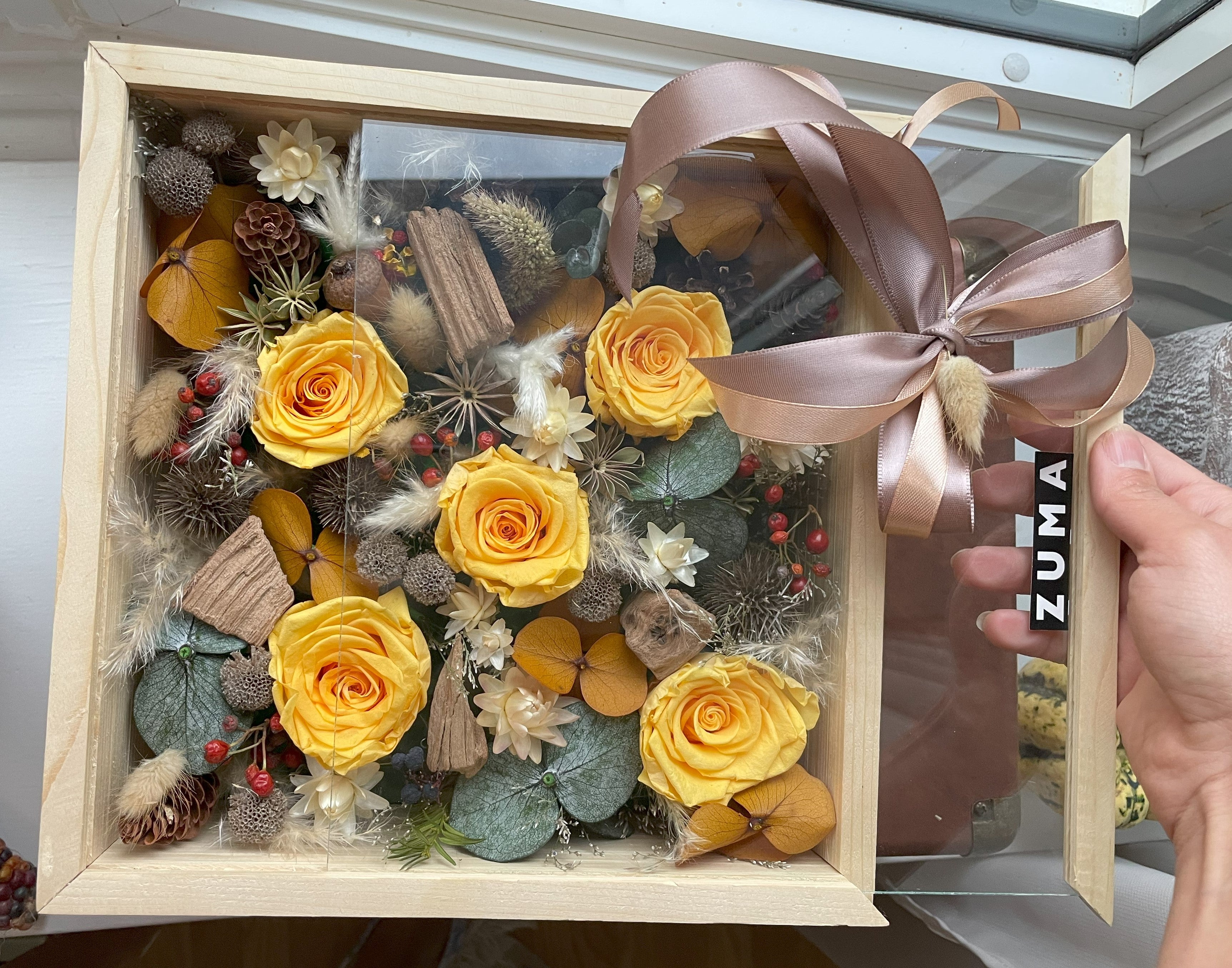 This preserved rose and dried flower display box is a thoughtful gift and a lasting keepsake that will provide beauty and joy for years to come.