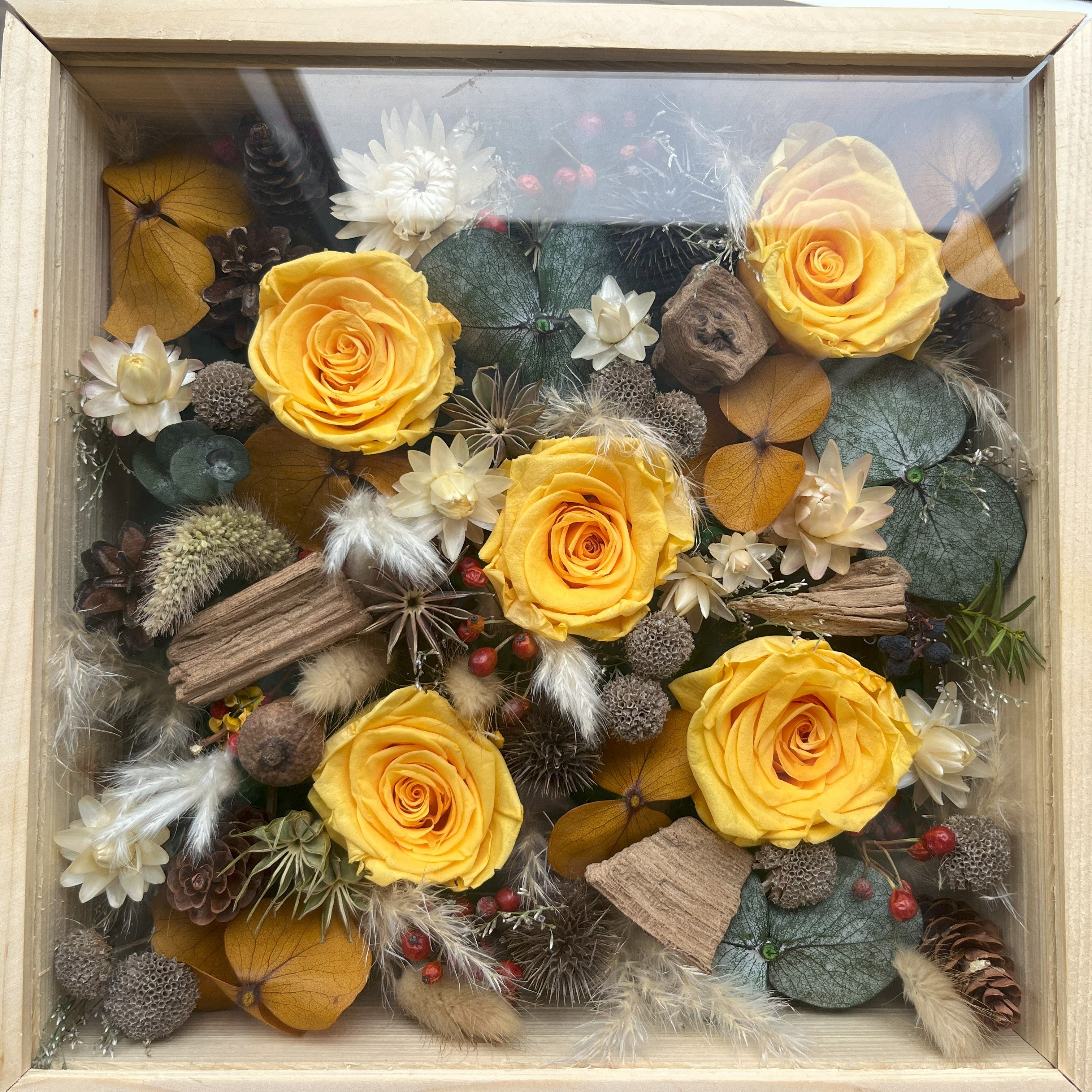 Note: Each display box is hand-assembled, and some natural variations may occur in the selection of dried flowers used, ensuring each piece is unique and one-of-a-kind.