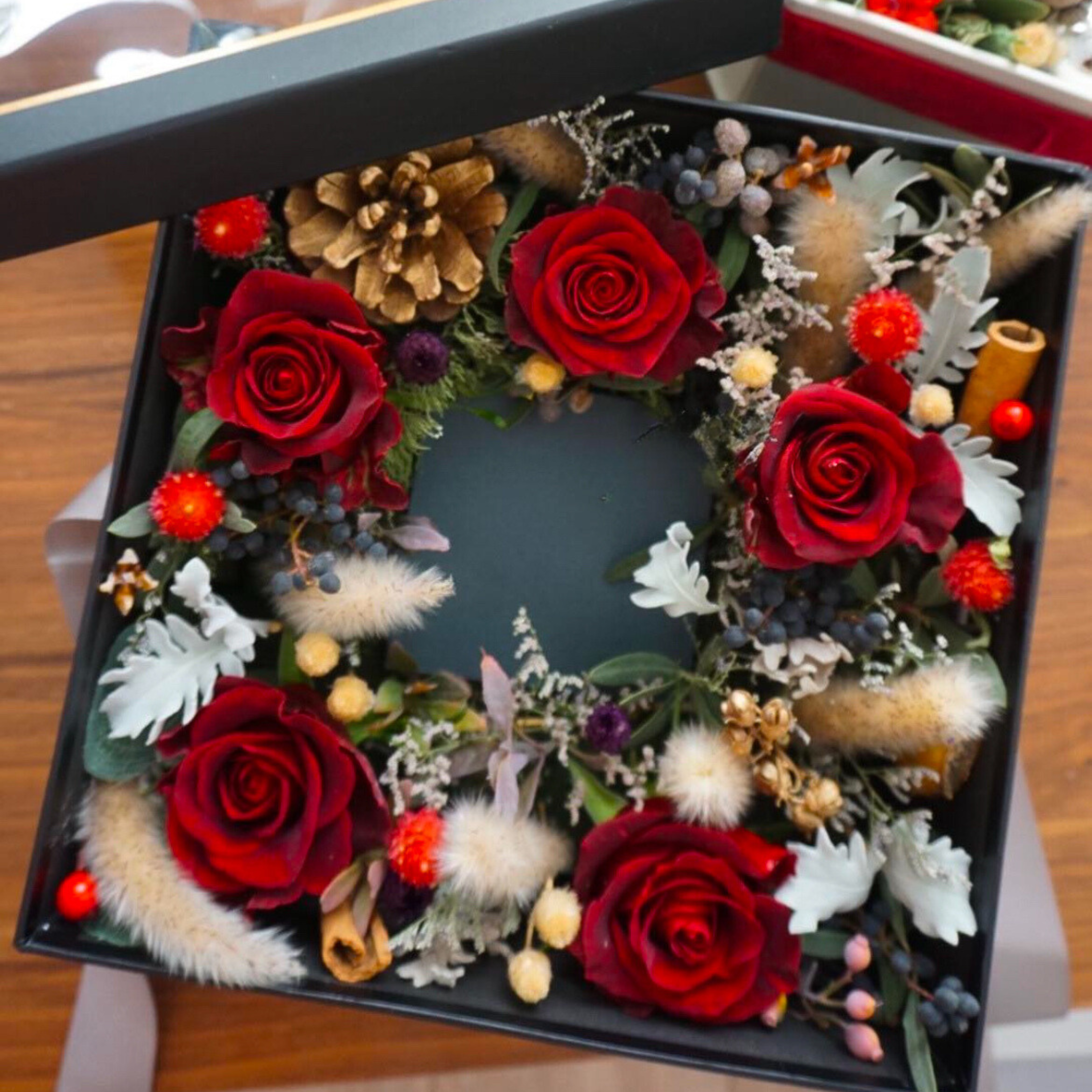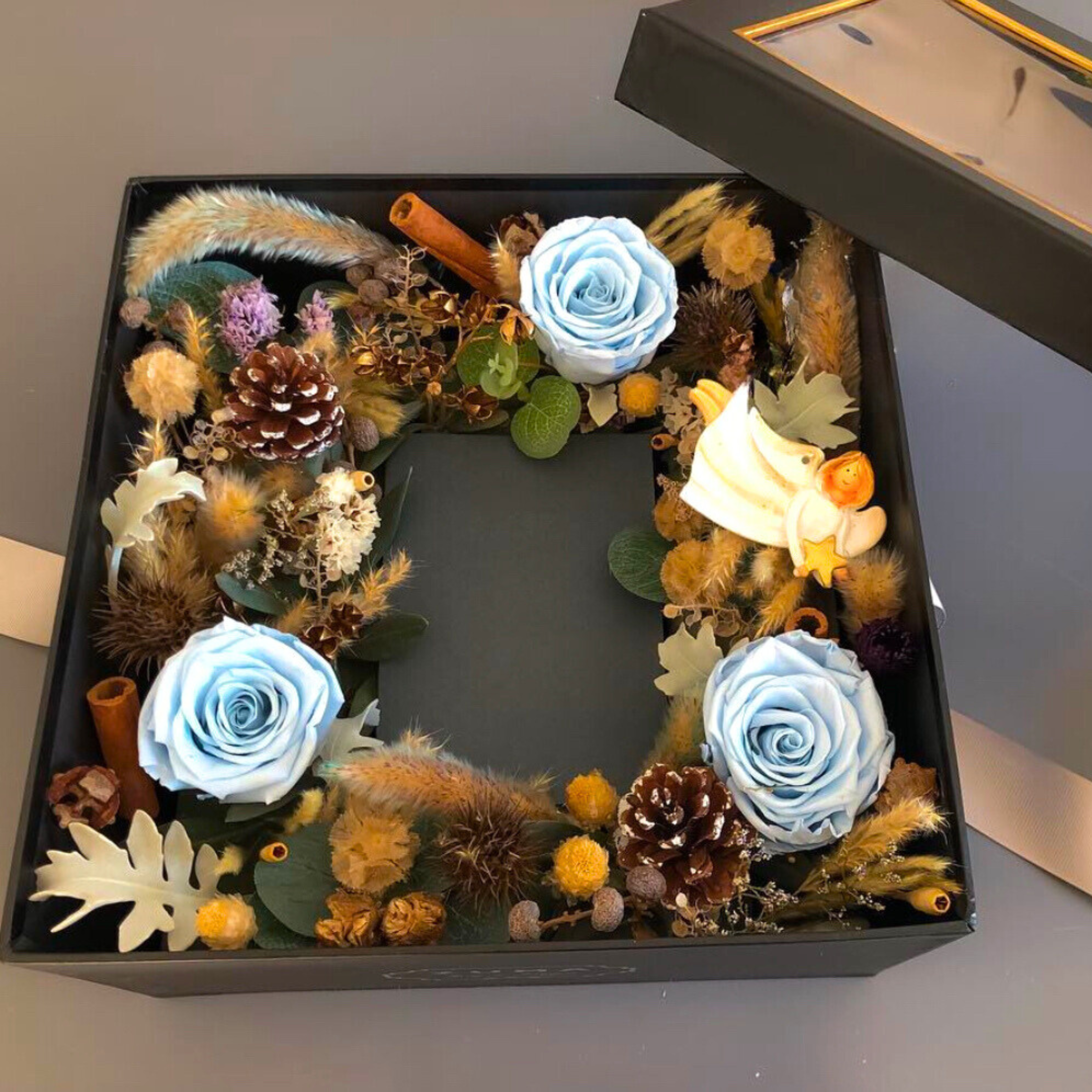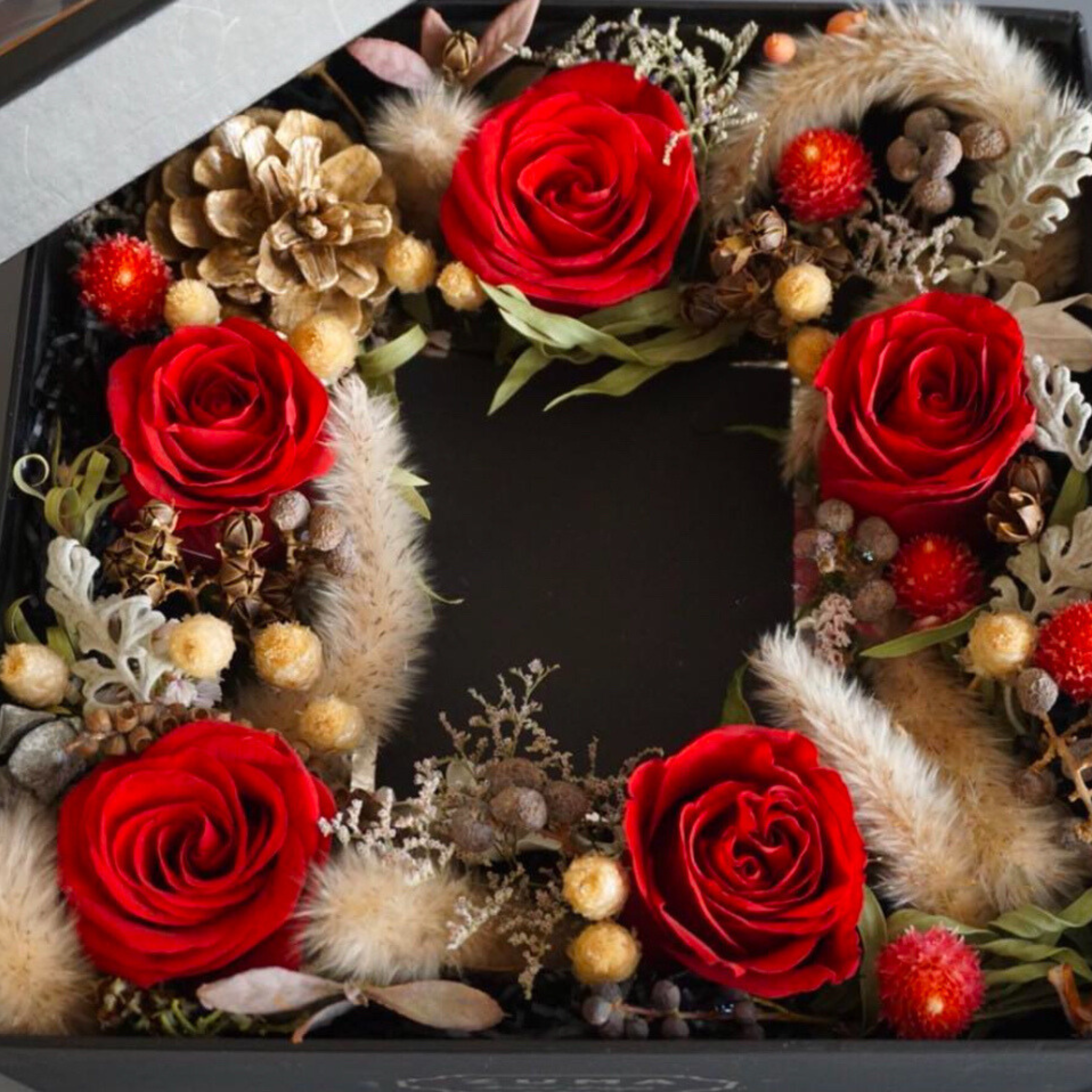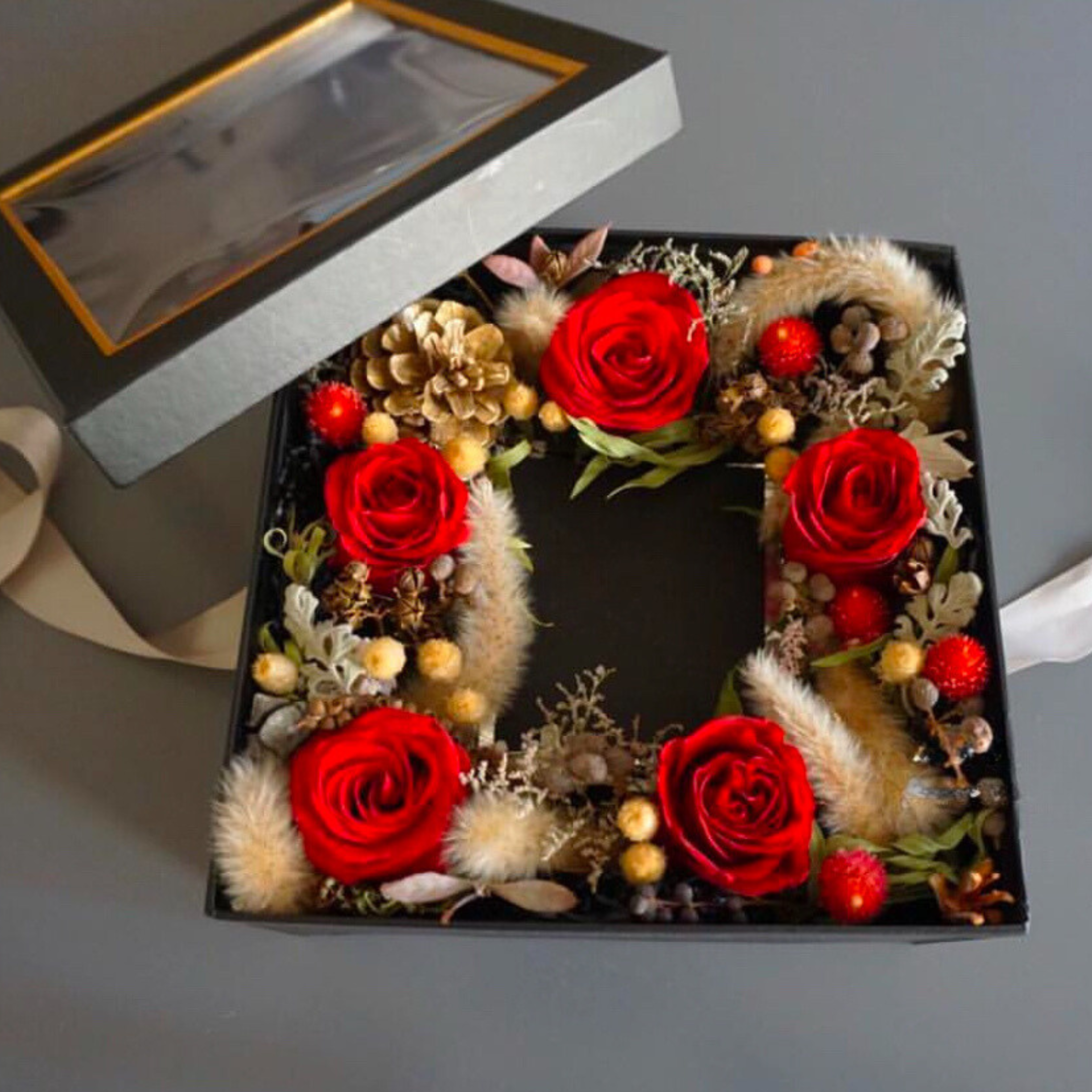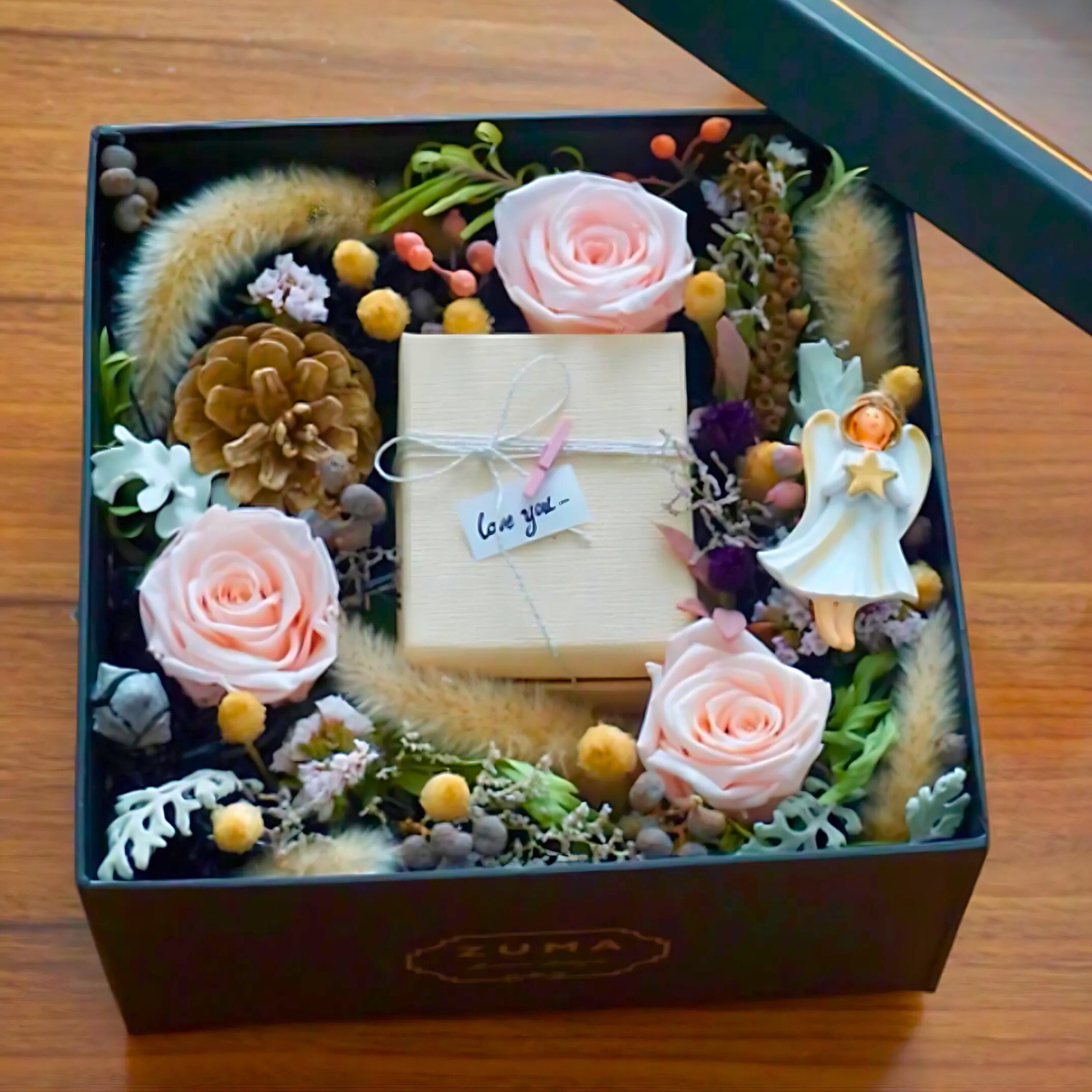 Elevate your gifting experience with our ZUMA Preserved Rose & Dried Flower Luxury Gift Box, a perfect blend of sophistication and timeless beauty. This stunning floral arrangement combines premium preserved roses with hand-selected dried flowers to create a luxurious display that lasts.