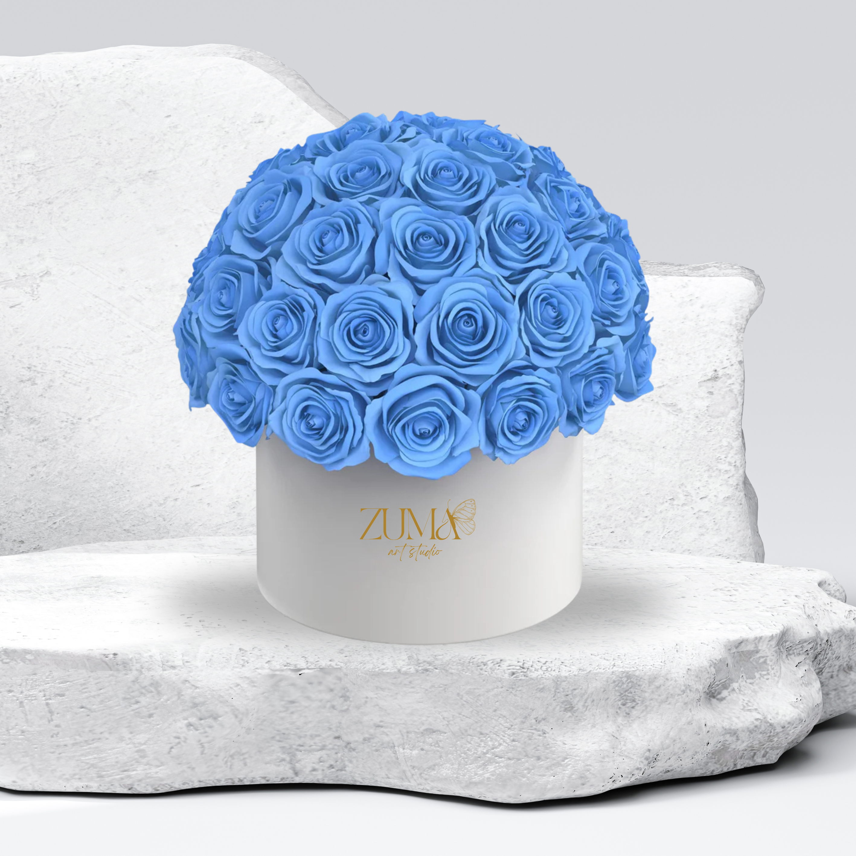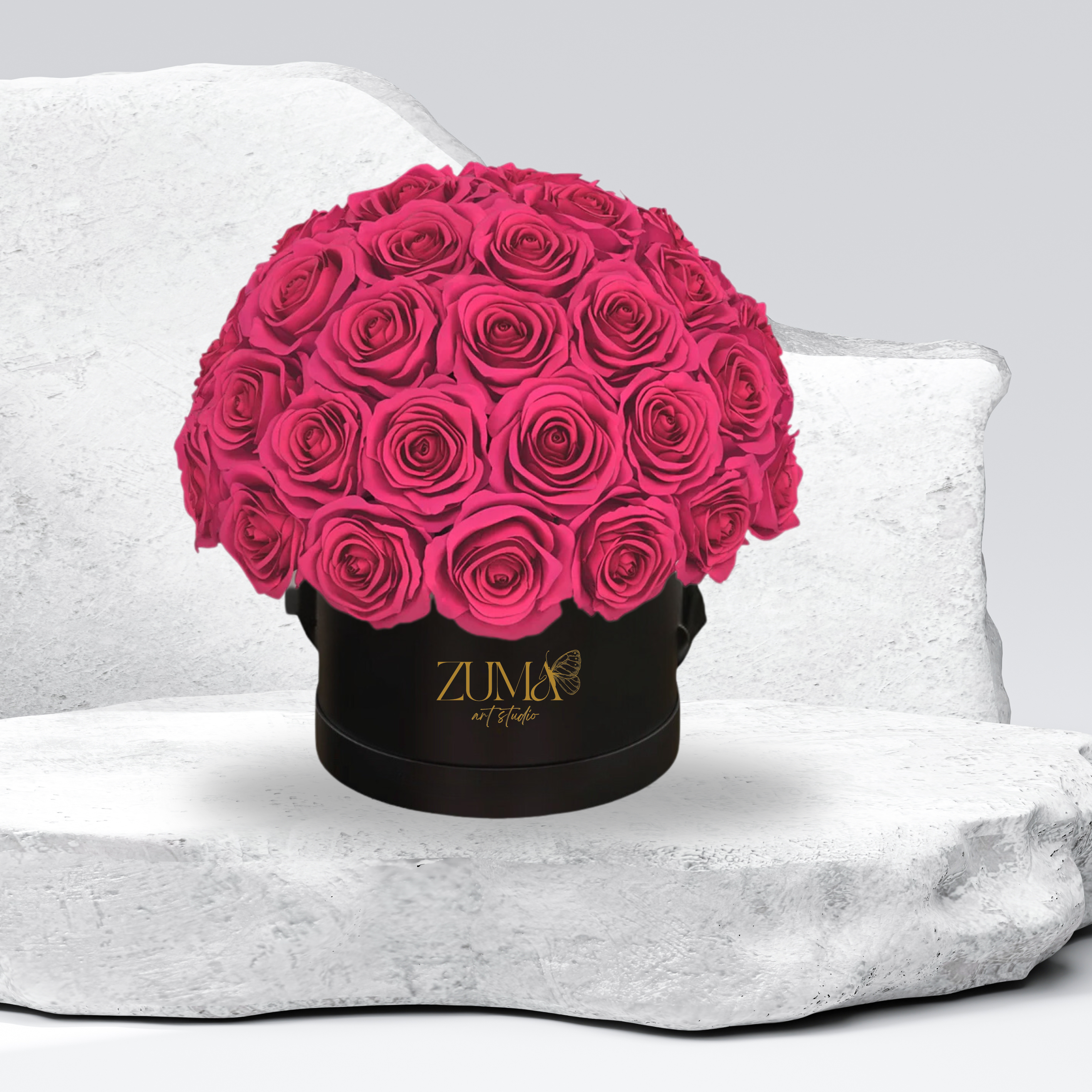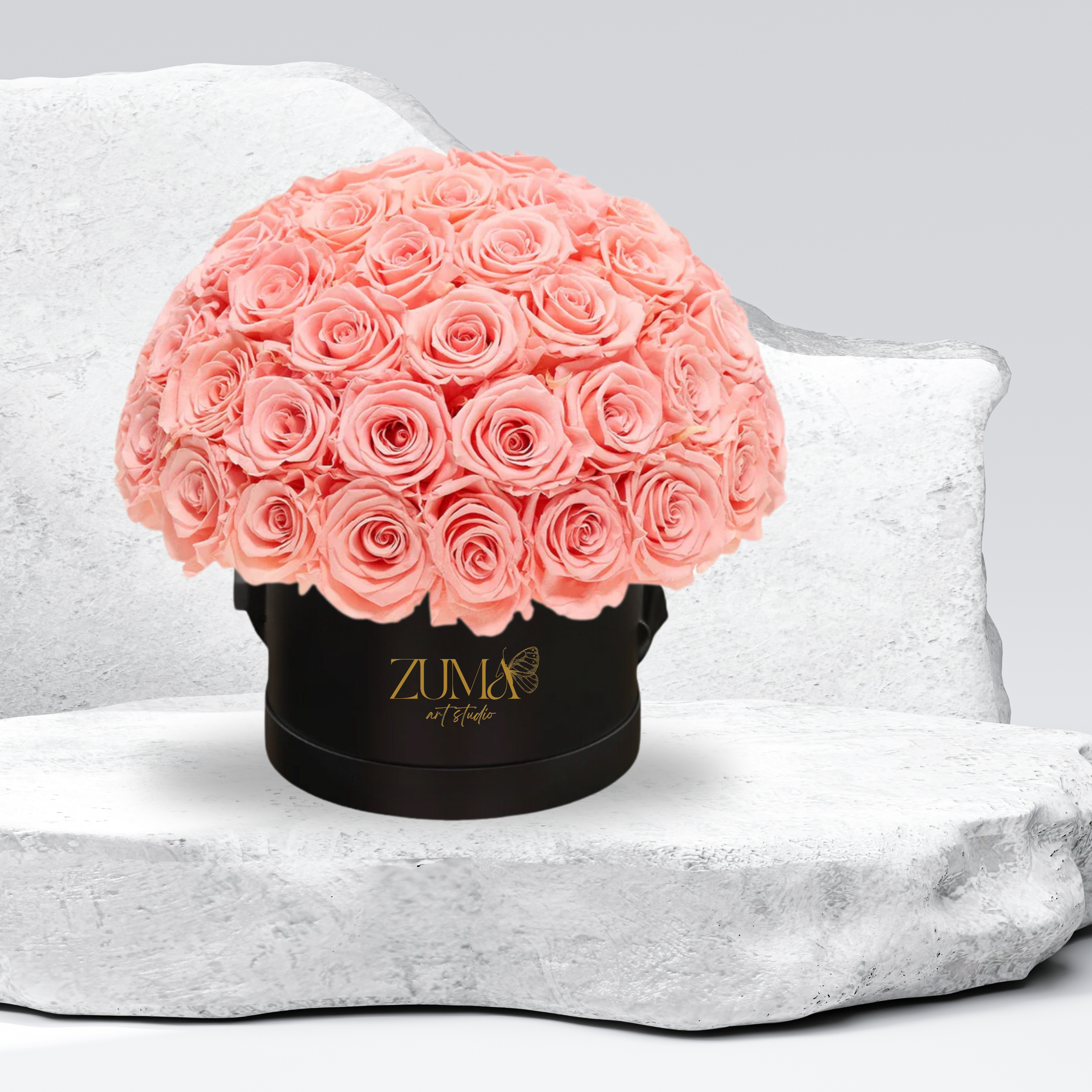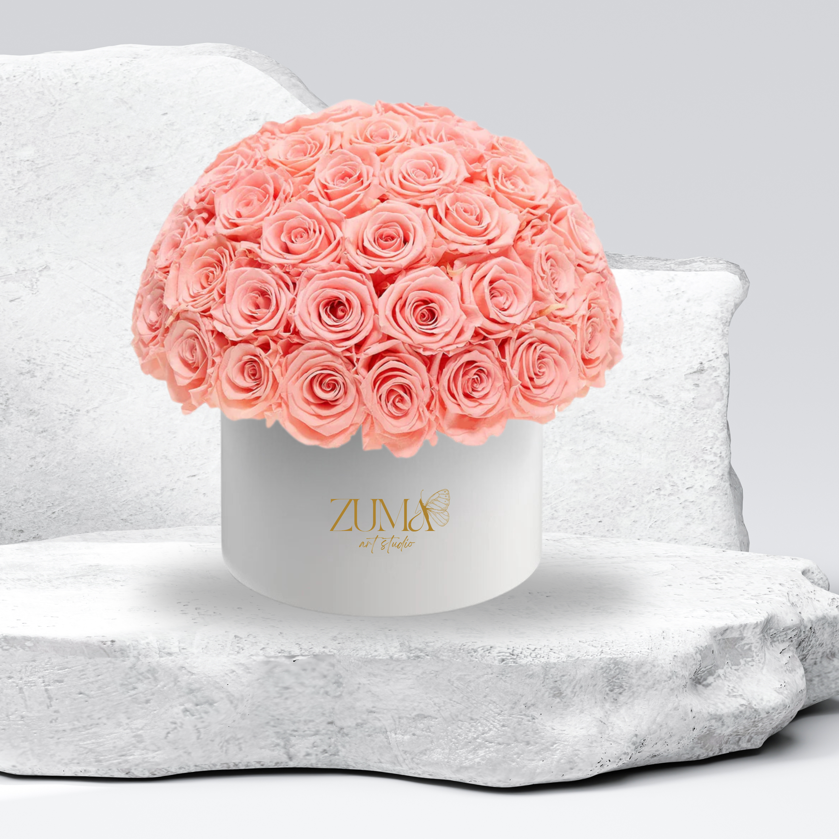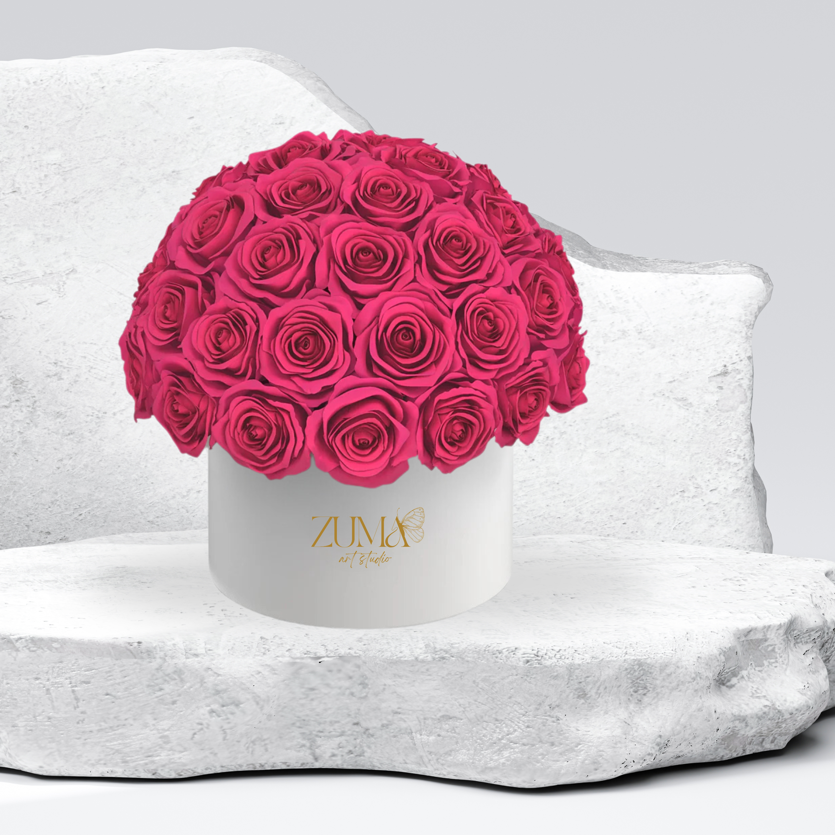 Our Sonic arrangements are classic and refined clusters of stunning Eternity Roses set in Parisian hat box-inspired boxes. Available in two different colors, our Sonic arrangements will make any space feel more elegant and refined. They're magnificent in their simplicity.