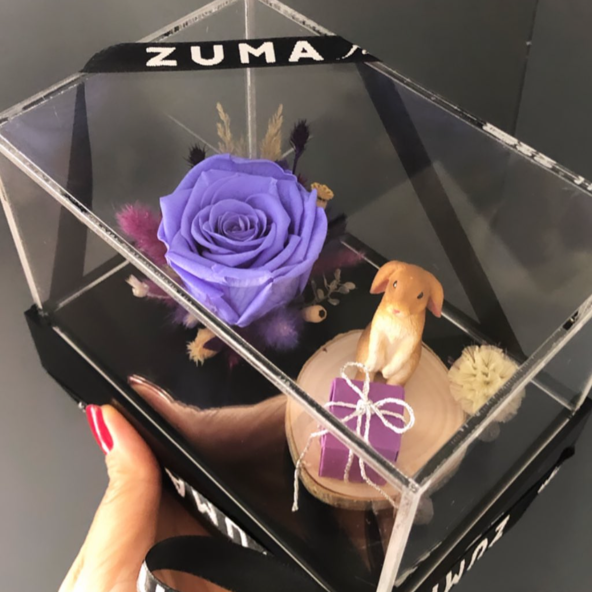 For a truly unique and meaningful gift, the ZUMA Cute & Sweet Infinity Rose combines the beauty of a timeless preserved blue rose with charming decorative elements. Encased in a sleek, clear acrylic box, this piece is perfect for lasting memories, offering elegance, simplicity, and love in one thoughtful package.